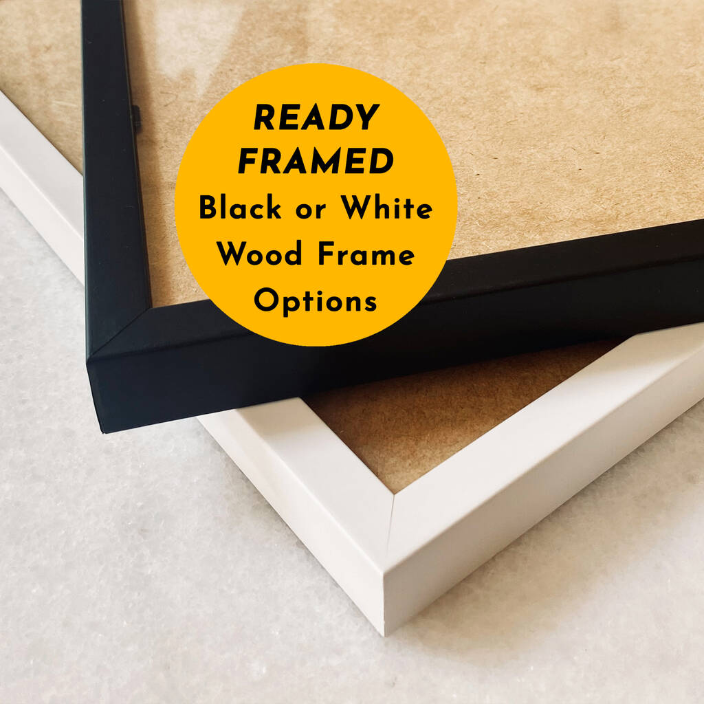 You can also select a Ready Framed A4 or A3 size Print - the perfect way for sending directly as a gift to family or friends for Birthdays and at Christmas. Choose either Black or White finished wooden frames.